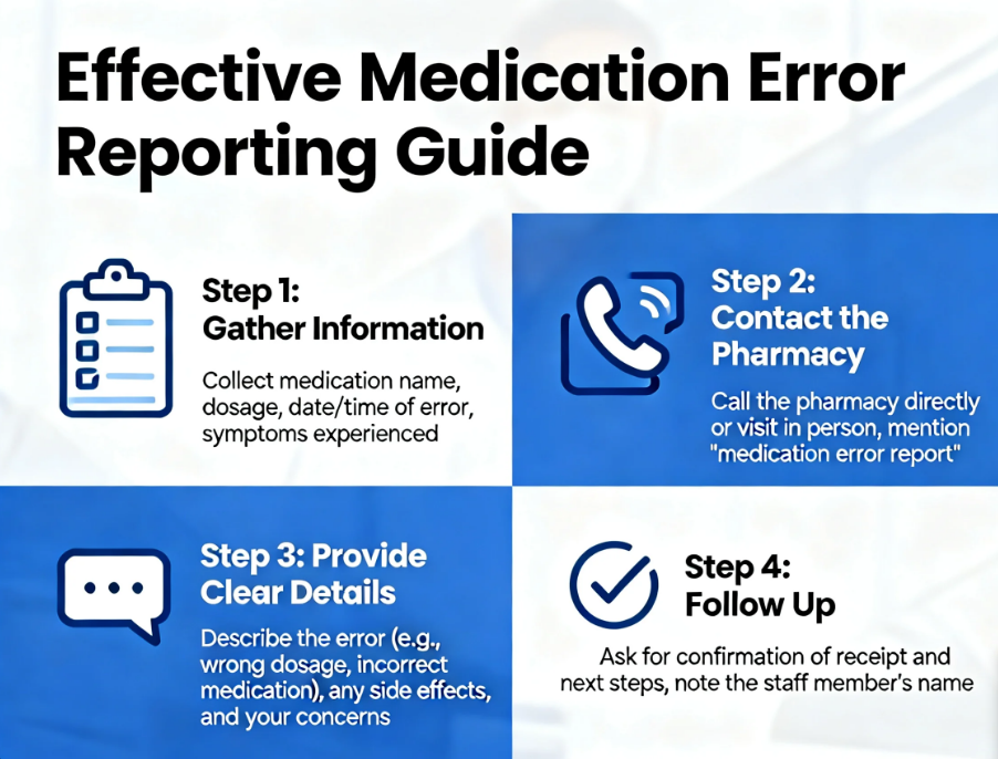 Legal and Ethical Implications, How can I report medication errors or problems to a pharmacy?